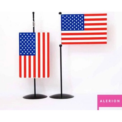 Saténová tištěná vlaječka USA v rozměru 11 × 16,5 cm. Stolní praporky USA dodáváme pro zavěšení nebo nasunutí na stojánek.