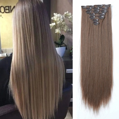 Vlasy clip in 7 pásů - světle hnědé vlasové příčesky rovné 45 cm Získejte krásu a sebevědomí během několika vteřin! Vlasové příčesky jsou vyrobeny z kvalitního umělého vlákna...