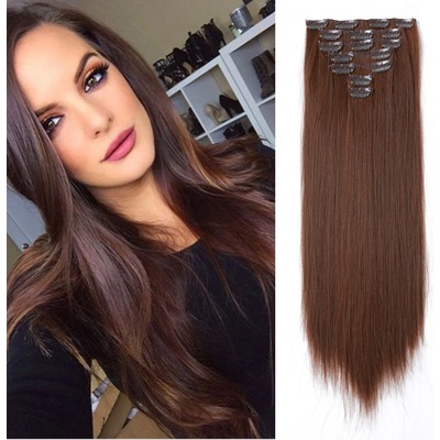 Vlasy clip in 7 pásů - hnědo-červené vlasové příčesky rovné 60 cm Získejte krásu a sebevědomí během několika vteřin! Vlasové příčesky jsou vyrobeny z kvalitního umělého vlákna...