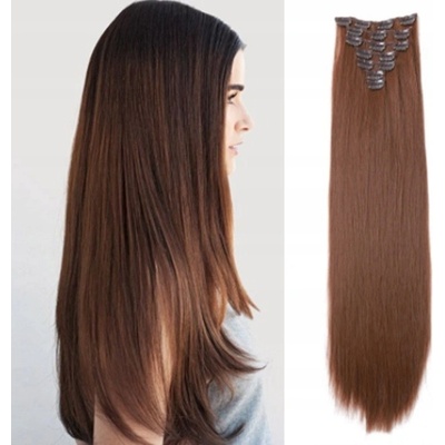 Vlasy clip in 7 pásů - hnědé vlasové příčesky rovné 60 cm Získejte krásu a sebevědomí během několika vteřin! Vlasové příčesky jsou vyrobeny z kvalitního umělého vlákna stejně...