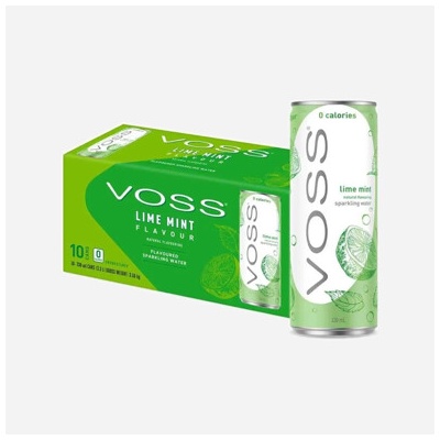 Voss Ochucená perlivá voda limetka a máta 330 ml. Prémiová artéská voda VOSS v ochucené verzi bez zbytečných kalorií a sladidel.