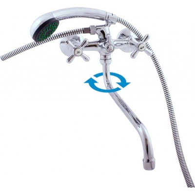 Vodovodní baterie vanová nástěnná s keramickým přepínačem, s vidlicí na odkládání sprchy a se sprchou. - Baterie je vybavena keramickými vršky 1/2 (MD0093) - S perlátorem od...