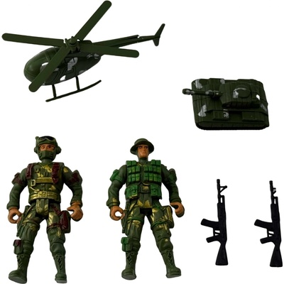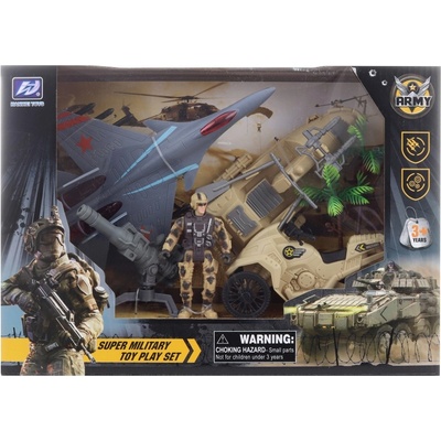 Vojenská sada obsahuje vojáka, stíhačku, motorku, vodní skútr a menší doplňky. Materiál plast. Baleno v krabičce. Rozměry balení cca 34x24x8 cm. Věk 3+