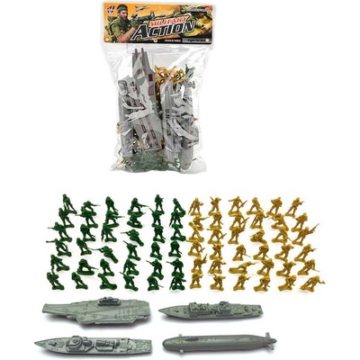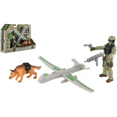 Vojenská sada obsahuje letadlo, člun, motorku a 3 vojáky. Rozměr letadla cca 19 x 19 cm. Rozměry balení cca 43 x 24,5 x 12 cm. Materiál plast. Věk 3+