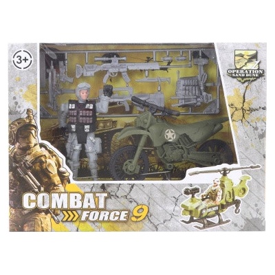 Vojenská sada. Balení obsahuje vojáčka, motorku a další doplňky. Rozměr balení cca 23 x 17 x 6,5 cm. Věk 3+ Vojenská sada. Balení obsahuje vojáčka, motorku a další doplňky....