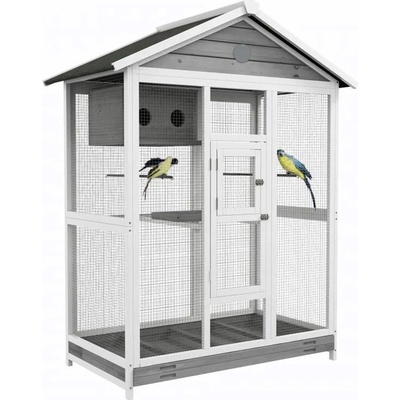 Voliéra pro ptáky PAWHUT D10-070V03GY, 112x68x154 cm Voliéra z jedlového dřeva, bílé provedení, je vhodná pro ptactvo, výsuvný trusník, 2 uzamykatelné dvířka, rozměry...