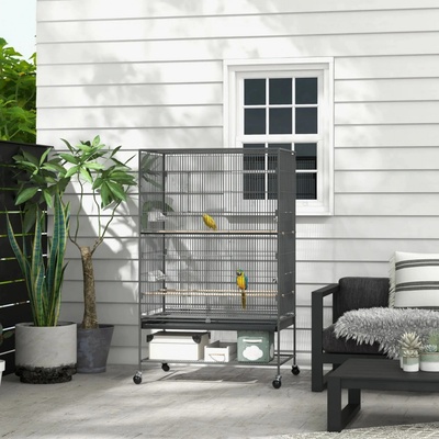 Klec pro andulky a papoušky s vnitřním vybavením. Rozměry: 810 x 480 x 1520 mm. Rozteč drátů: 12 mm