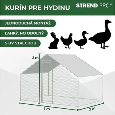 Kurník voliéra, se střechou, 3×2×2 m - STREND PRO Kurník voliéra se střechou s rozměry 3 × 2 × 2 m je větší venkovní konstrukce určená pro chov slepic (nebo jiných drůbežích...