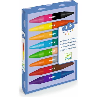 Tolik barev v jednom balení! Oboustranné voskovky – Djeco – 16 barev jsou vhodné pro děti od 3 do 6 let. Kvalitní, silné voskovky jako dělané do dětských ručiček zazáří už jen...