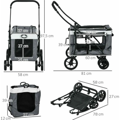 Vozík 2v1 pro psy do 10kg a délky těla 40 cm, jako přenosná taška s 2 madly a 2 popruhy, celkové rozměry 81x58x97,5 cm. Pokud máte malého nebo nemohoucího psa, jistotně oceníte...