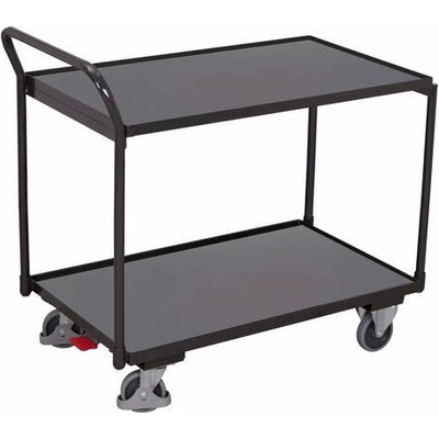 Policové vozíky se dvěma policemi vhodné pro přepravu materiálu a předmětů ve skladě. Police vyrobené z MDF desek jsou zasazené do kovových rámů vozíku s 12mm hranou. Pojezd...