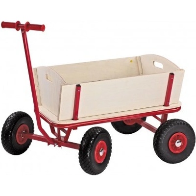 Plošina a bočnice z vícevrstvého dřeva. Podvozek a oj z robustních ocelových trubek s práškovou úpravou. Čtyři PU kola s drážkovaným profilem a plastovým ráfkem. Odnímatelné...