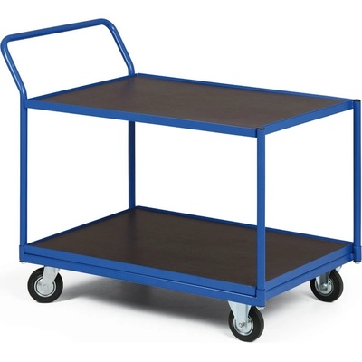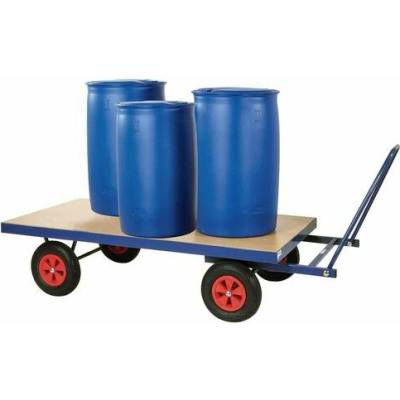 Manipulační vozík s pevnou ocelovou konstrukcí, ojí a velkou ložnou plochou.Vhodný k přepravě rozměrných břemen.Ložná plocha je vyrobena z laminované dřevotřísky.Pohyb zajišťují...