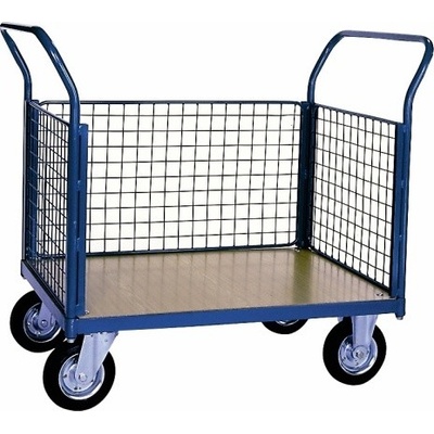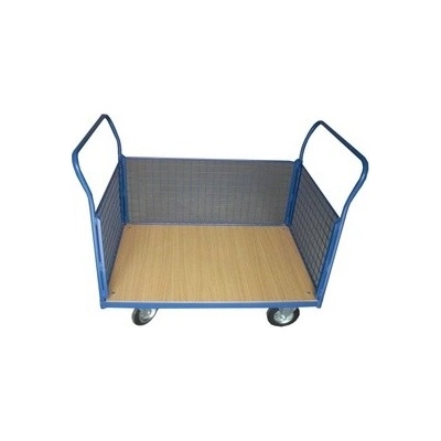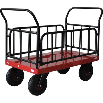 Plošinový vozík s madlem a vodorovnými příčkami. Ložná plocha 1300 x 800mm s otěru odolnou a voděodolnou deskou. Ložná plocha 1300 x 800 mm ? Kola 260 mm Druh...