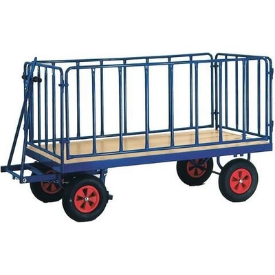 Manipulační vozík s pevnou ocelovou konstrukcí, velkou ložnou plochou a čtyřmi mřížovými stěnami.Ložná plocha je vyrobena z laminované dřevotřísky.Stěny jsou vysoké 77 cm,...