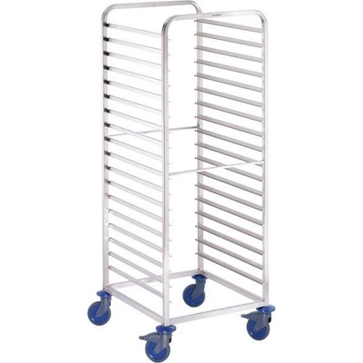 Blanco RWR 161 regálový vozík z nerezové oceli s 18 podpěrami na každé straně. Rozteč mezi podpěrami je 73 mm. Kapacita vozíku: 36 GN 1/1 nebo 18 GN 2/1. Hmotnost vozíku je 25...