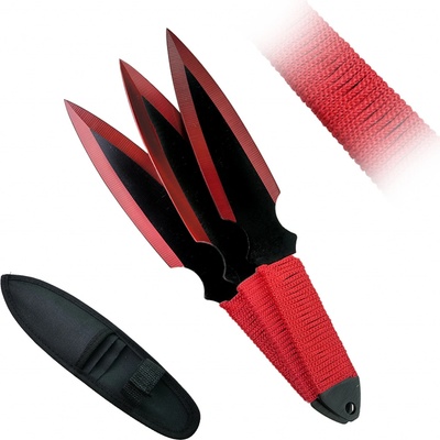 Vrhací nože "RED RAIN" - 3ks s pouzdrem Krásná sada větších vrhacích nožů, která obsahuje hned 3 kousky z nerezové oceli ! Čepele jsou z důvodů vrhaní ztupené, špička je ale...