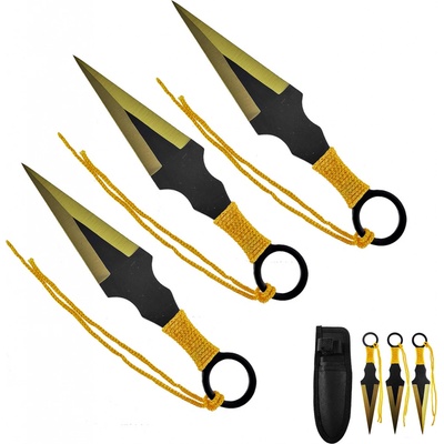 Vrhací nože "YELLOW LIGHTNINGS" - 3 ks Krásná sada větších vrhacích nožů, která obsahuje hned 3 kousky z nerezové oceli ! Hroty jsou oboustranně zbroušené a jehlovitého tvaru,...