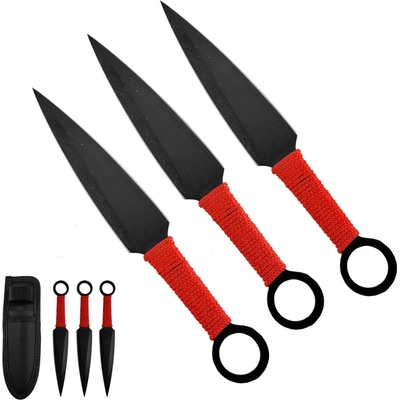 Malé vrhací nože "KUNAI RED" - 3 ks Krásná sada krátkých, 17,2 cm. dlouhých vrhacích nožů, která obsahuje hned 3 kousky z nerezové oceli 3cn13! Hroty jsou oboustranně...