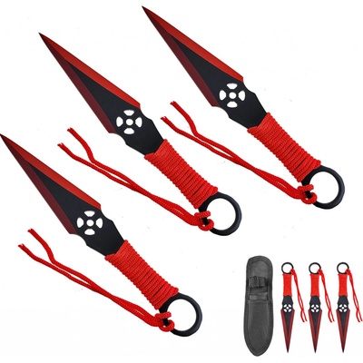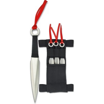 Vrhací nože "RED AIMER" - 3 ks Krásná sada větších vrhacích nožů, která obsahuje hned 3 kousky z nerezové oceli ! Hroty jsou oboustranně zbroušené a jehlovitého tvaru, špička...