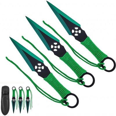 Vrhací nože "GREEN AIMER" - 3 ks Krásná sada větších vrhacích nožů, která obsahuje hned 3 kousky z nerezové oceli ! Hroty jsou oboustranně zbroušené a jehlovitého tvaru, špička...