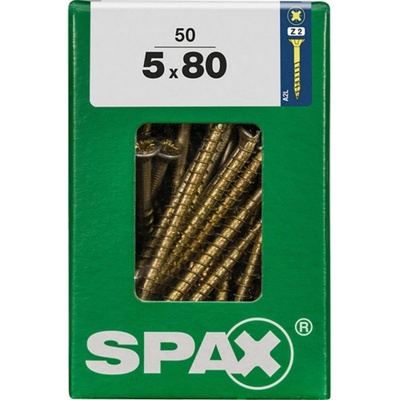 Univerzální vrut SPAX 5x80 PZ, plný závit žlutý, zápustná hlava, 50 ks