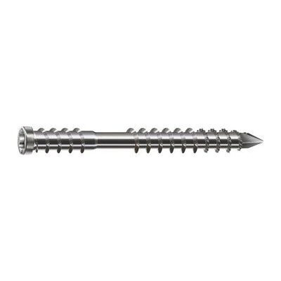 Terasové nerezové vruty 4,5x50 mm s malou zápustnou hlavou vhodné pro modřín, smrk a termodřevo Profesionální vruty pro dřevěné terasy, venkovní obklady a fasády Speciální řezná...