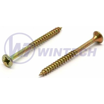 WINTECH AAABE45050CB5K Vrut do dřeva průměr 4,5 mm, délka 50/30 mm, balení 50 ks, zápustná hlava, částečný závit, křížová drážka pozidriv, zinek žlutý. Částečný závit umožňuje...