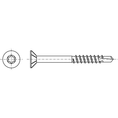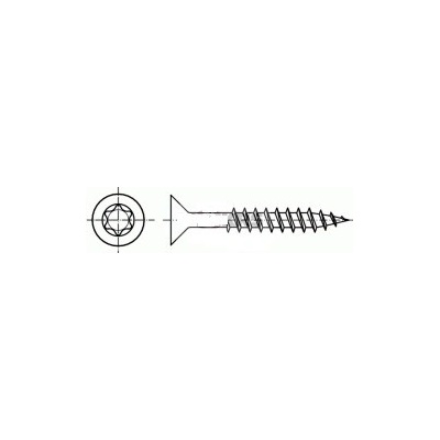 Nerezový univerzální vrut se zápustnou hlavou s vnitřním hvězdicovým šestinranem TORX se závitem k hlavě.
