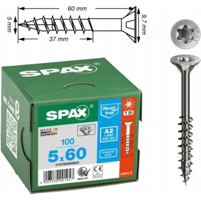 ke kotvení teras a fasád, materiál kalená nerezová ocel, typ hlavy zápustná, závit dvouchodový, drážka T25, průměr 5 mm, délka 60 mm, 200 ks/bal.