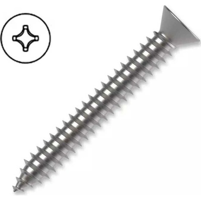 Vlastnosti: - Šrouby do plechu - Se zápustnou hlavou a křížovou drážkou PH - povrch - materiál - nerez A2
