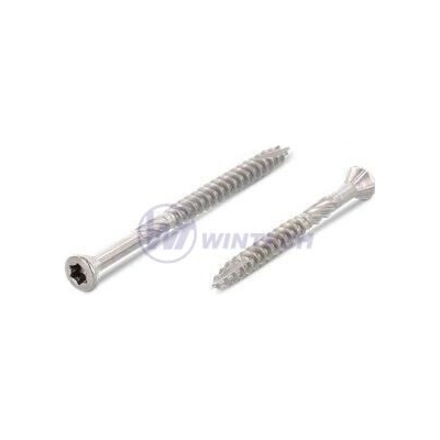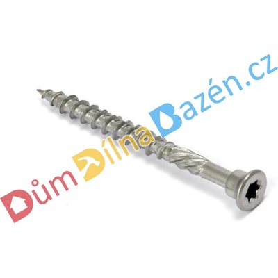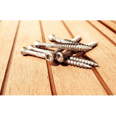 Terasový vrut konstrukční - Podlahový šroub - NEREZ. Vkodné pro montáž palubek a podlahových desek. Cena za celé balení 100 kusů. Vyrobeno z nerezové oceli AISI 410, aby se...