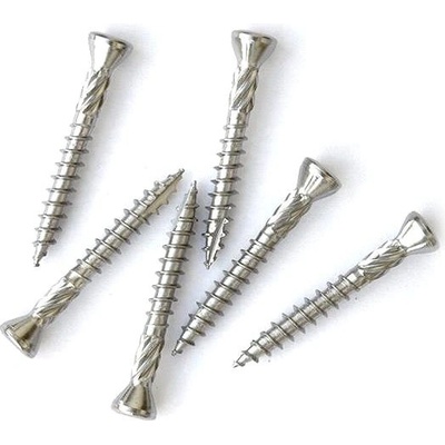 Terasové vruty pro venkovní dřevěné terasy. Upevňovací závit pro trvalé spojení palubové desky se spodní konstrukcí a pro minimalizaci vrzání.
