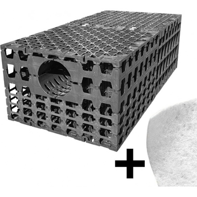 Vsakovací blok 300 sada - včetně geotextilie Flexibilní a vysoce účinný vsakovací blok 300l s retencí dešťových vod, včetně geotextilie 4,8 m2. Jeden blok o váze cca 14 kg nahradí ∼ 1200 kg štěrku (1 m3) a umožní Vám snadnou revizi. Dělící filtr zachová retenční...