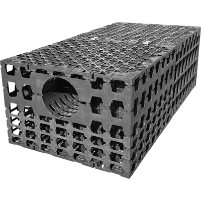 Flexibilní a vysoce účinný vsakovací blok 900 l vsakování a retenci dešťových vod. Jeden blok o váze cca 45 kg nahradí ∼ 3600 kg štěrku (3 m3) a umožní Vám snadnou revizi....