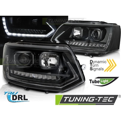 PŘEDNÍ SVĚTLOMETY, SVĚTLA, LAMPY VW VOLKSWAGEN T5, 2010 - LED DAYLIGHT, ČERNÉ BLACK S HOMOLOGACÍ