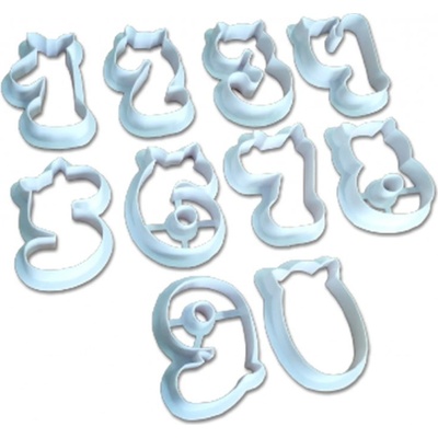 Sada 9 plechových vykrajovátek ve tvaru číslic.