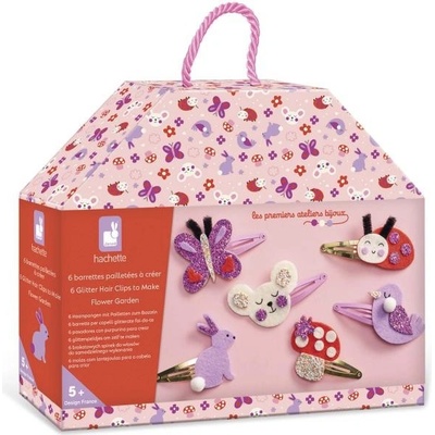 Květinová zahrada! Z této kreaitivní sady můžete vyrobit 6 třpytivých spon do vlasů s motivem obyvatel zahrady: pěkného motýla, berušky, zajíčka, ptáčka, houbu a myšky....