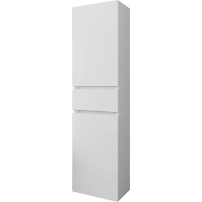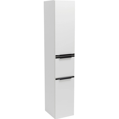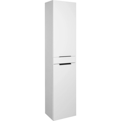 Vysoká skříňka do koupelny 158 cm, bílý lesk, se dvěma dvířky a malou zásuvkou, černé matné úchytky. Doplňková koupelnová skříňka v bílém lesku je ideálním řešením pro ty, kteří...