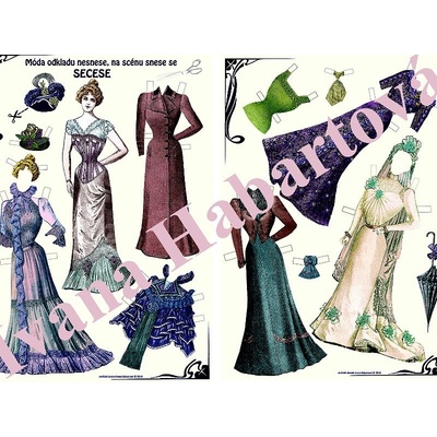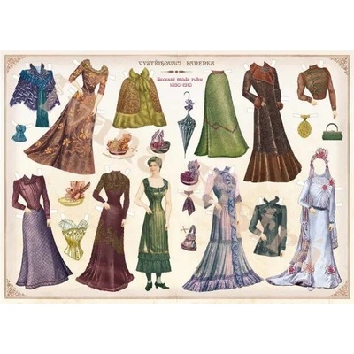 Pod heslem "Móda odkladu nesnese, na scénu snese se secese" vám nabízíme papírovou secesní panenku na vystřihování a oblékání. Panenka si může vzít patery různé šaty, živůtek, halenku, šátek na krk, dvě různé pokrývky hlavy, deštník a dokonce i zlatavou paruku!Panenku...