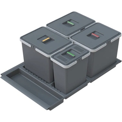 Inteligentní systém košů a organizace spodní skříňky. Výsuvný koš do zásuvky o objemu 3x19 l a 1x16 l. Do koše lze vkládat pytle na odpadky. Vynikající pro třídění odpadu v...