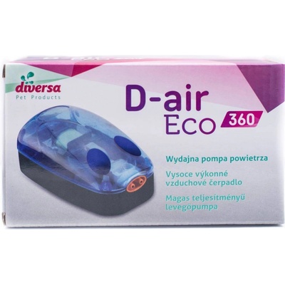 Vysoce výkonné vzduchové čerpadlo DIVERSA D-air Eco 360 s výkonem 360l/hod. Velmi tichý a bezpečný provoz, antivibrační gumové nožičky. DIVERSA D-air Eco 360 zajišťuje přívod...