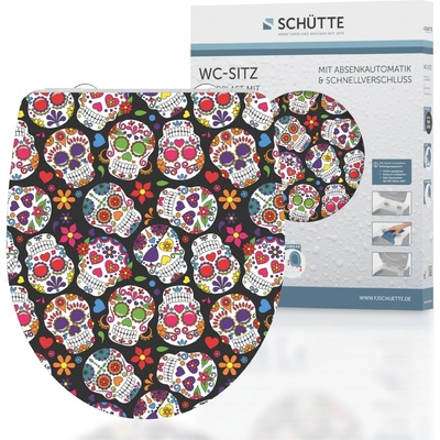 Duroplast HG WC sedátko CRAZY SKULL s měkkým zavíráním a rychloupínáním - 82586. Sedátko s motivem svátek mrtvých (Día de Muertos) SOFT-CLOSE: Dvojité automatické spouštění...