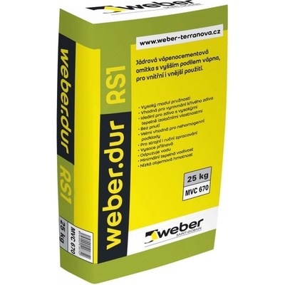 Weberdur RS1 jádrová vápenocementová omítka S vyšším podílem vápna, pro vnitřní i vnější použití. Vápenocementová suchá omítková směs pro strojní i ruční zpracování....