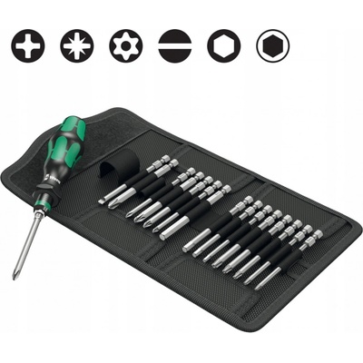 Kompaktní ráčna Wera Zyklop s integrovaným zásobníkem bitů 27dílná sada Zyklop Pocket s bity, hlavicemi, univerzálním držákem a nástavcem Perfektní kombinace ráčny Zyklop s...