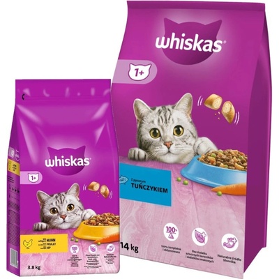 SUCHÉ KRMIVO WHISKAS ADULT S KUŘECÍM MASEM 14KG PRO KOČKY WHISKAS s lahodným kuřecím masem je kompletní suché krmivo s paštikami křehkými na vnější straně a s jemnou náplní uvnitř, které kočky milují. Granule s vysoce kvalitními bílkovinami jsou pečlivě vyvinuty tak,...