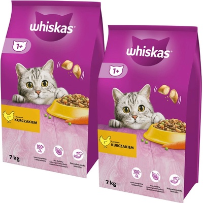 WHISKAS ADULT S KUŘECÍM MASEM SUCHÉ KRMIVO PRO KOČKY 7 kg WHISKAS s lahodným kuřecím masem je kompletní suché krmivo s křehkými paštikami na vnější straně a jemnou náplní uvnitř, kterou kočky milují. Granule s vysoce kvalitními bílkovinami jsou pečlivě vyvinuty tak,...