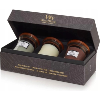 Sada obsahuje: Vonná svíčka váza Fireside 85 g Vonná svíčka váza White Teak 85 g Vonná svíčka váza Stone Washed Suede 85 g