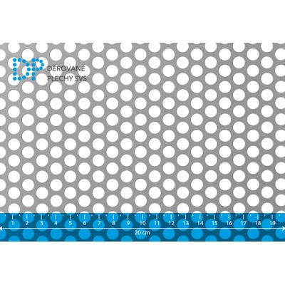 Děrovaný plech hliníkový, kruhové přesazené děrování Rv 2-3 mm. Rozměr 1000x2000 mm. Tloušťka plechu 1 mm. Vyrobeno dle DIN 24 041. Jakost Al 99,5 % - čistý hliník. Hmotnost...