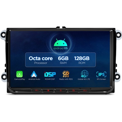 Autorádio pro vozy VW (2003-2015), Škoda (2006-2015), Seat - 9" HD dotykový displej, Android 14, osmijádrový procesor, operační paměť 8GB, vnitřní paměť 256GB, DSP, GPS, Wifi,...